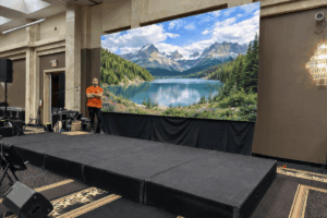 • 200–500 people – 15×8 ft LED screen